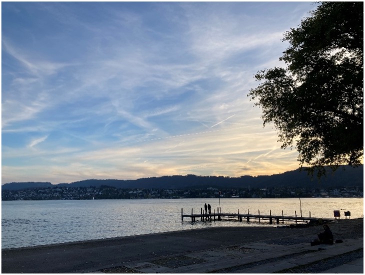 2023年の10月から2024年3月までの5か月間、スイスのチューリッヒに滞在しました。 1枚目:夕方のチューリッヒ湖。散歩するのに良い公園があります。